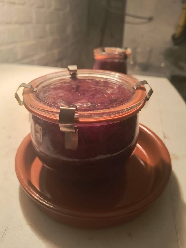 Zeer benieuwd naar het resultaat. Het is minimum 8 dagen wachten maar het is beter om langer te wachten (dat ga ik zeker doen). In principe zijn de gefermenteerde groenten onbeperkt houdbaar in gesloten weckpot als alles juist is gegaan. In de koelkast blijven ze geopend 6 weken goed. Ik heb zeer secuur de richtlijnen gevolgd dus nu zeer benieuwd naar het resultaat.