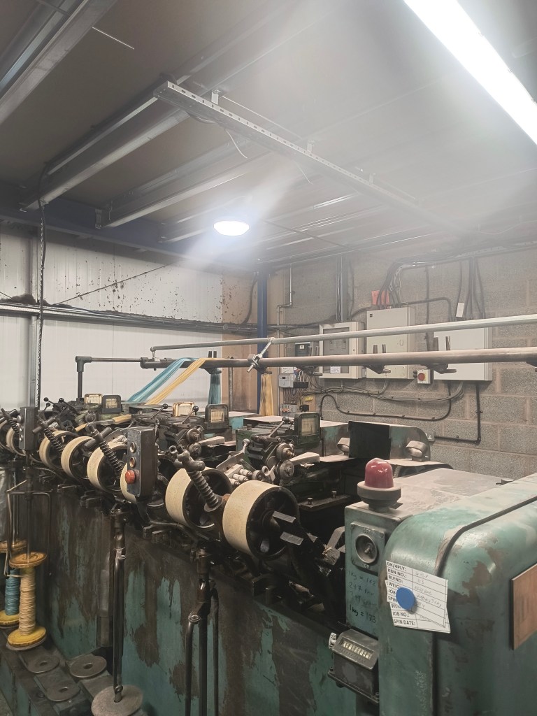 We hielden op een gemeenschappelijke uitstap halt bij John Arbon Textiles. We kregen er te zien hoe wol werd gespind. Kranige machines met elk hun eigen naam nemen dit taakje op zich. In British Wool leerden we hoe wol wordt geselecteerd. De mensen straalden arbeidsvreugde uit.